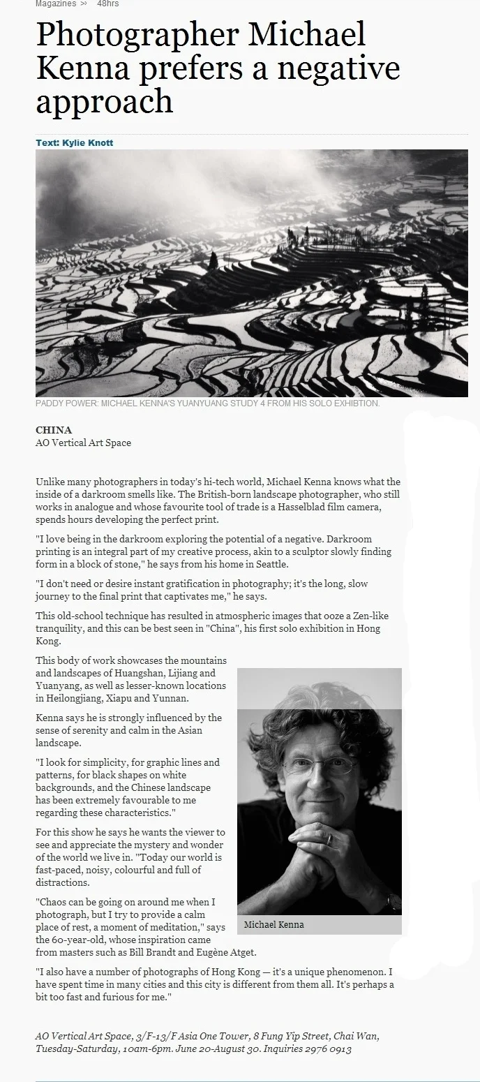 2014-7 | Art Daily 'Michael Kenna's first solo exhibition at AO Vertical Gallery HK'