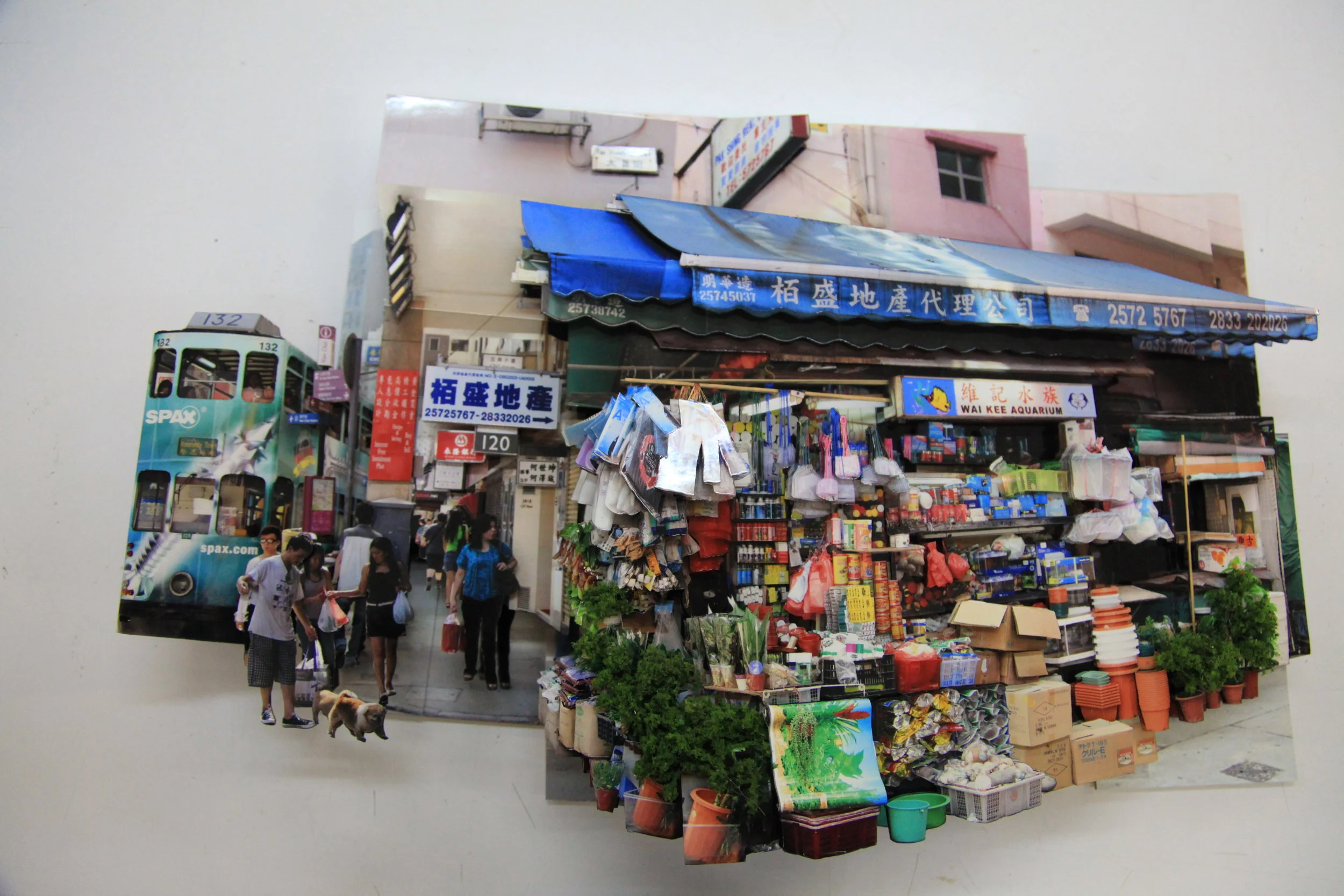 Currently a secondary school Visual Arts teacher, Alexis Ip practiced pottery and sculpture under the guidance of Mr. Eric Chan, Mr. Chan Chung Kong and Mr. Chu Tat Shing. His FOTOMO work “The Blue House” and his pottery work “The Old Memories” were selected in the Hong Kong Arts Biennial 2005. His FOTOMO work “Hong Kong Image, Fa Yuen Street” is the winner of Hong Kong Contemporary Arts Award 2009. Alexis works are collected by Hong Kong Museum of Arts and overseas art lovers. Artists influenced by Dadaism of the 1920’s turned out a large amount of photomontage. Readymades by Marcel Duchamp also included collages. Alexis Ip’s 3-dimensional Fotomo (i.e. photo + model) is contrary to high technology ; his creation is hand-crafted from a collage of numerous photographs depicting old neighbourhoods, street scenes and the celebrations of festivals. Trivial stories within a big city are contained in his model of micro-photos.